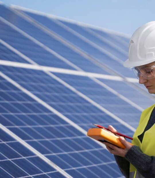 Water Flow Discharged Hydro Power Light Energy Saving Solar Energy Man Worker Frild Solar Energy Wearing Protection Equipment Solar Energy Alternative Energy Plant Solar Energy Repairing Solar Panel Solar Energy